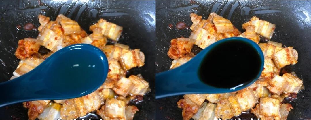 3、鍋內不放油,倒入五花肉煸炒,先把五花肉裏面的油煸炒出來一些。