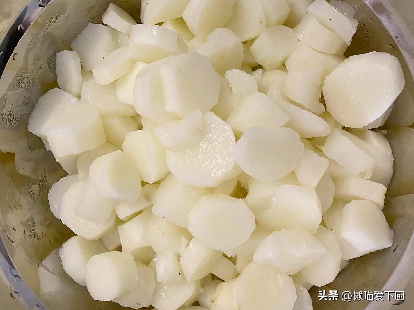 1、山藥削皮洗淨,切成小塊狀,上鍋隔水蒸30分鐘,再用勺子壓成泥狀;