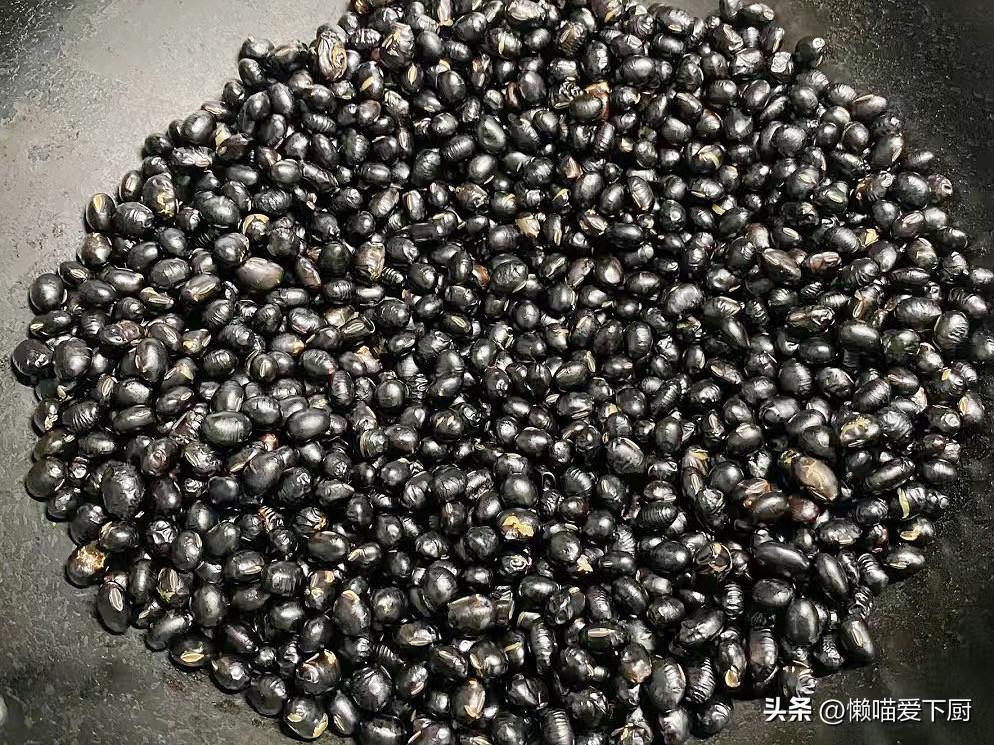 2、鍋熱後倒入黑豆,幹炒至豆子表面水分完全蒸發掉;