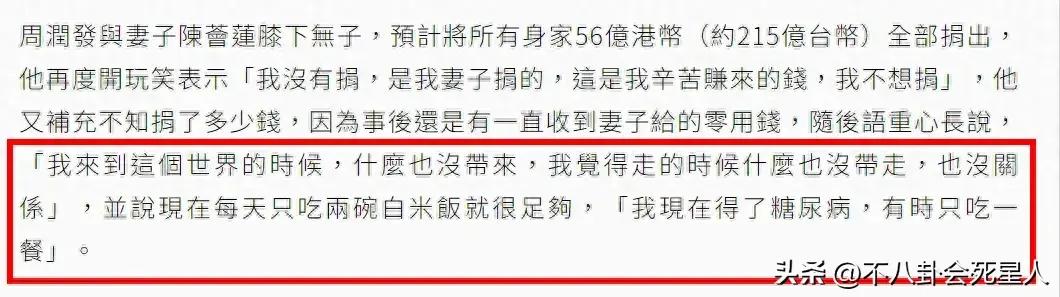 不得不說,周潤發和陳薈蓮的“無私”還是很令人感動的,雖然說他們沒有生育孩子,但還有家人親人在,能決定裸捐身家,也說明他們很有回饋社會的責任心。