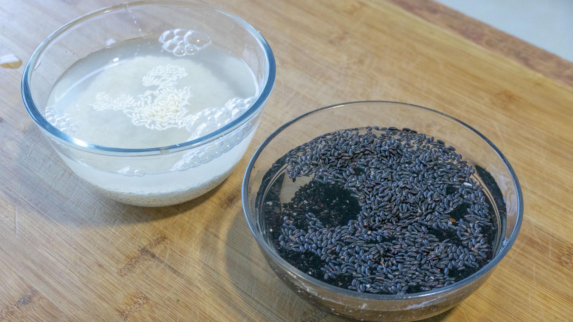 1、先準備200克黑米和糯米200克,加水提前泡一夜。