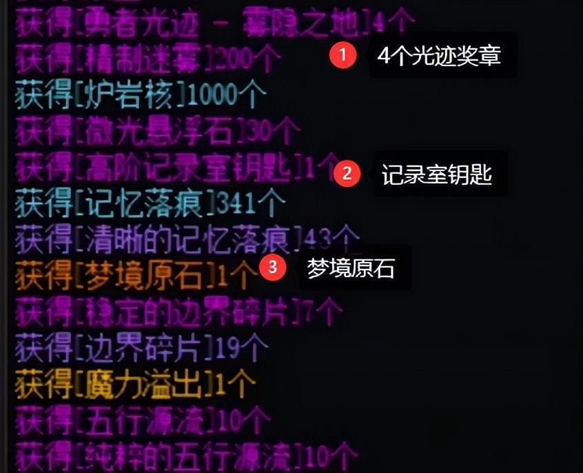 然後通關霧神妮之後,我們可以獲得「1個夢境原石+4個光跡+1個記錄室鑰匙」。
