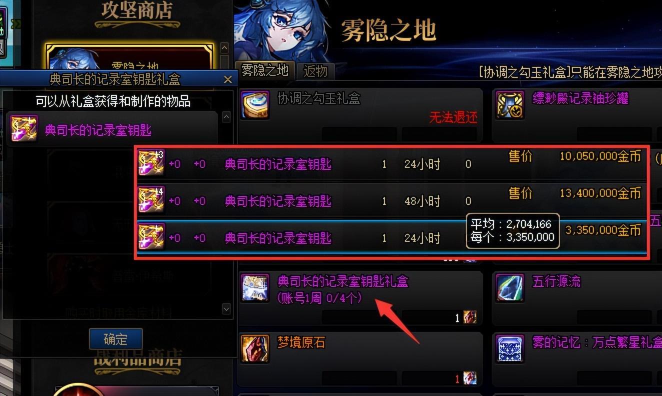 其中“夢境原石”可以在攻堅商店中兌換“記錄室鑰匙禮盒”,這個禮盒打開後獲得的鑰匙可以交易,現階段價格在330萬左右!