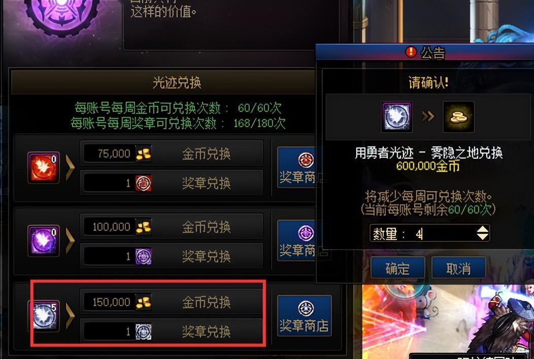 除此外,4個光跡獎章也可以換成金幣,1個光跡獎章等於15萬,4個光跡獎章就是60萬金幣!