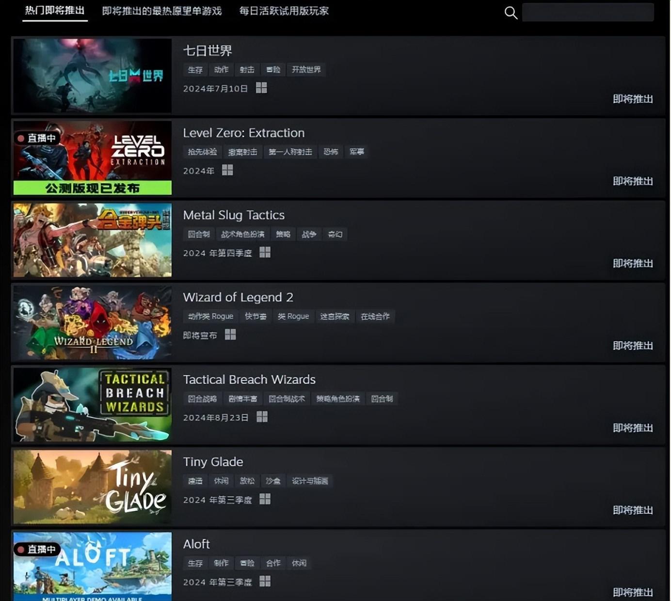 此後的Steam新品節上,開啓限時測試的《七日世界》一舉奪得了熱門新品榜、最熱願望單和新品在線榜三榜第一,遊戲在全球範圍內的受關注度可見一斑。