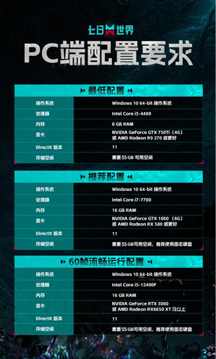 在此之前,官方已經開啓了預下載和預創角活動,一併公佈了遊戲的具體PC端配置需求: