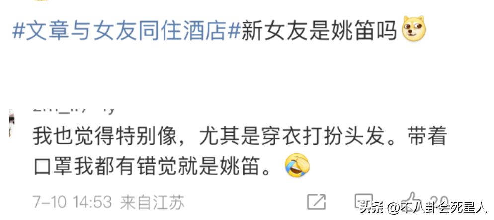 甚至有網友提出疑問,文章的新女友會不會就是姚笛啊?主要還是因爲,文章這位新女友的穿着打扮身材髮型和姚笛都很相似,兩人屬於同一種類型的美女,也有網友感慨,看來文章這麼多年了還是喜歡姚笛風格的美女啊。