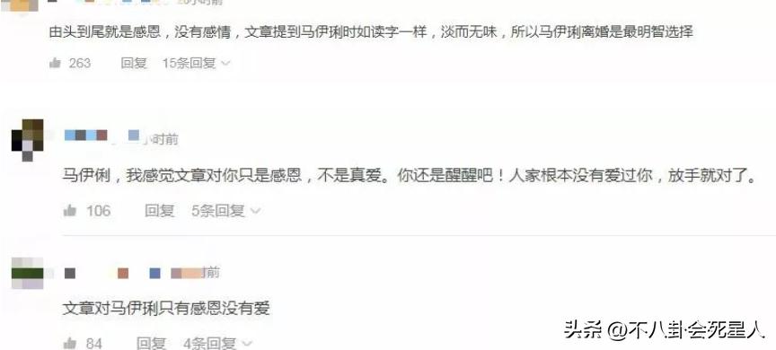 但就如網友評論的,感覺文章對馬伊琍只有感恩,缺乏了夫妻之間的“愛”,他從頭到尾都沒有說過一句“愛”,只是一直說感恩。
