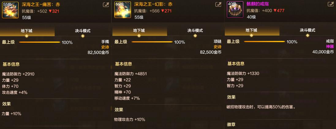 兄弟們注意了這裏重點來了,“深海戒指”的提升是不如骨戒的,不管有沒有湊齊3件套,都打不過骨戒;