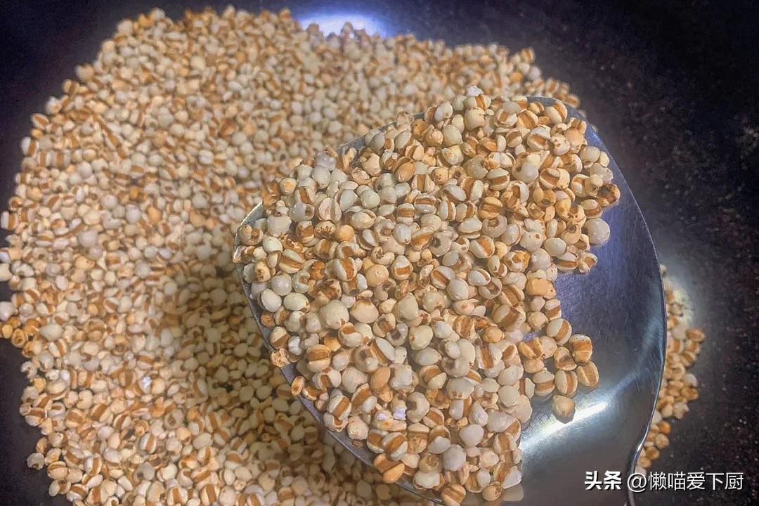 1、紅豆、薏仁洗淨後晾乾水分,下鍋幹炒,炒至薏仁表面泛黃即可關火;