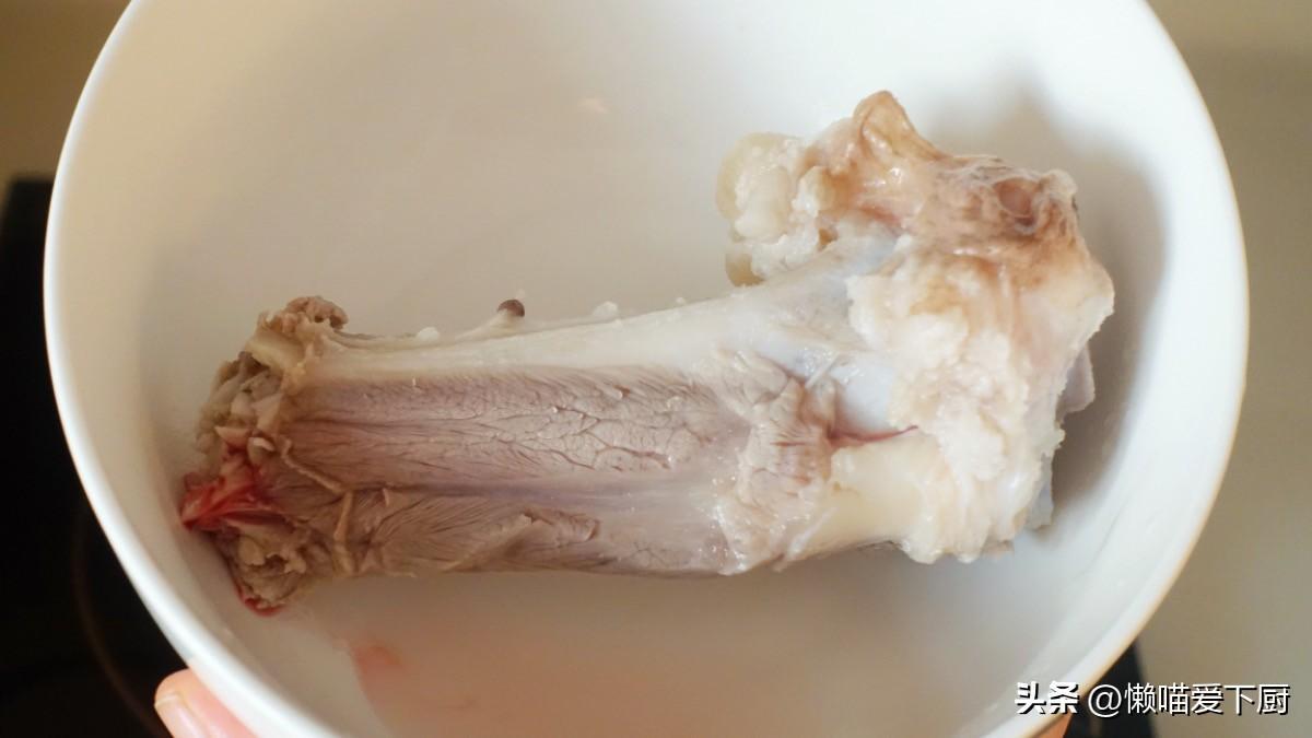 1、筒骨洗淨,冷水下鍋,放幾片生薑,煮出浮沫後撈出來洗淨;
