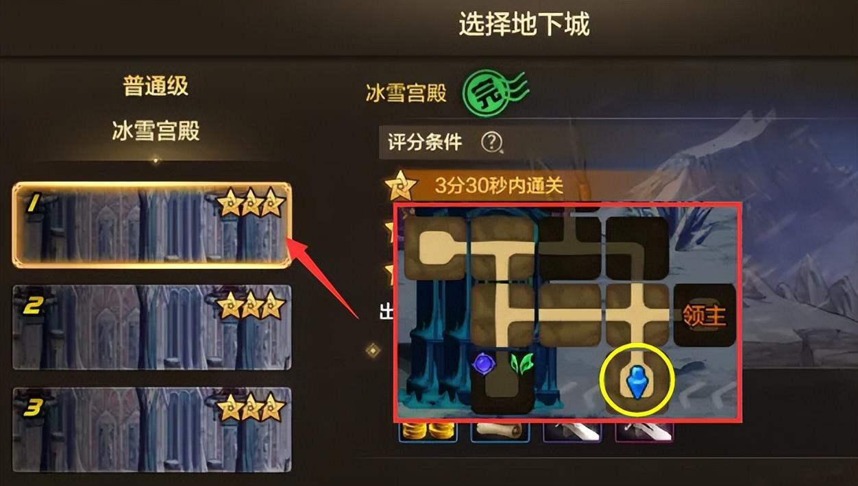 任務地圖:萬年雪山——普通級冰雪宮殿圖1