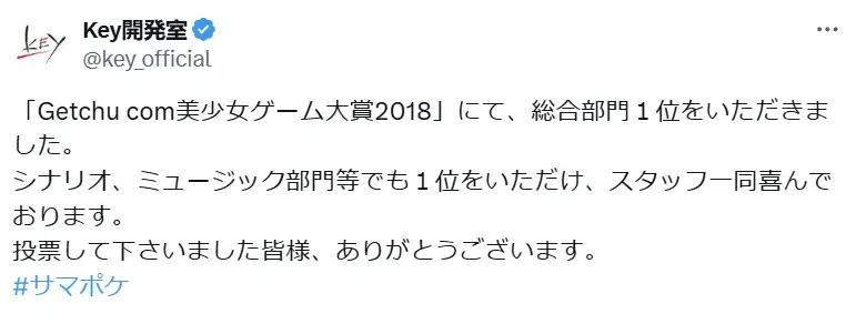 本作獲得了Getchu美少女遊戲大賞2018綜合部門的第一名