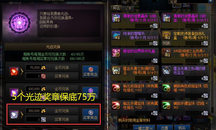 那麼2個記錄室鑰匙就可以換來600多萬金幣,再加上5個光跡獎章還可以保底兌換75萬金幣!