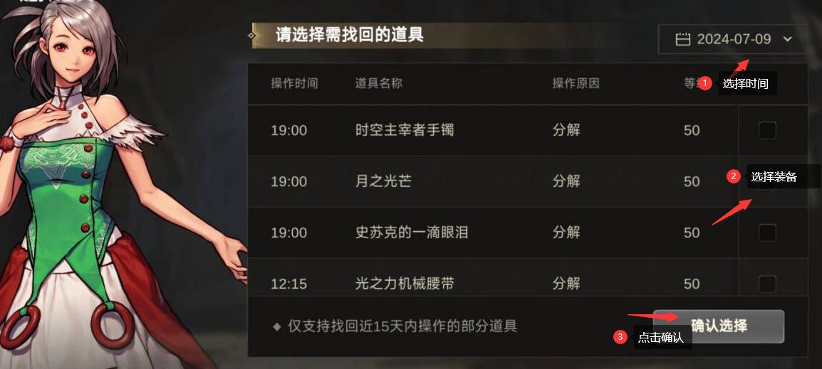 不過需要注意的是,只能找回15天以內誤操作的裝備,就算大家打算用這個方法;
