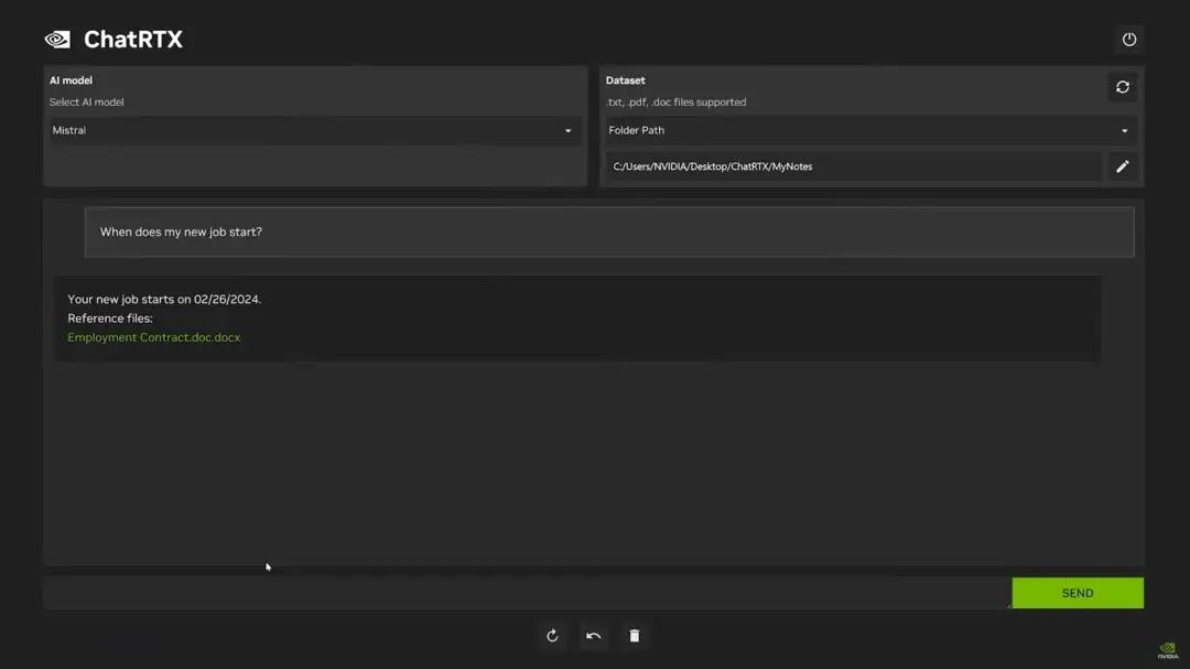 ChatRTX作爲NVIDIA推出的技術Demo,藉助檢索增強生成(RAG)和 NVIDIA TensorRT-LLM 軟件,將生成式 AI 功能引入 RTX AI PC。用戶只需一鍵部署安裝,就能完全在本地和對應的文檔或圖片對話,幫忙搜索文件裏的對應資料、找找只有模糊印象的照片,能在保障個人隱私的前提下體驗到AI管家服務。