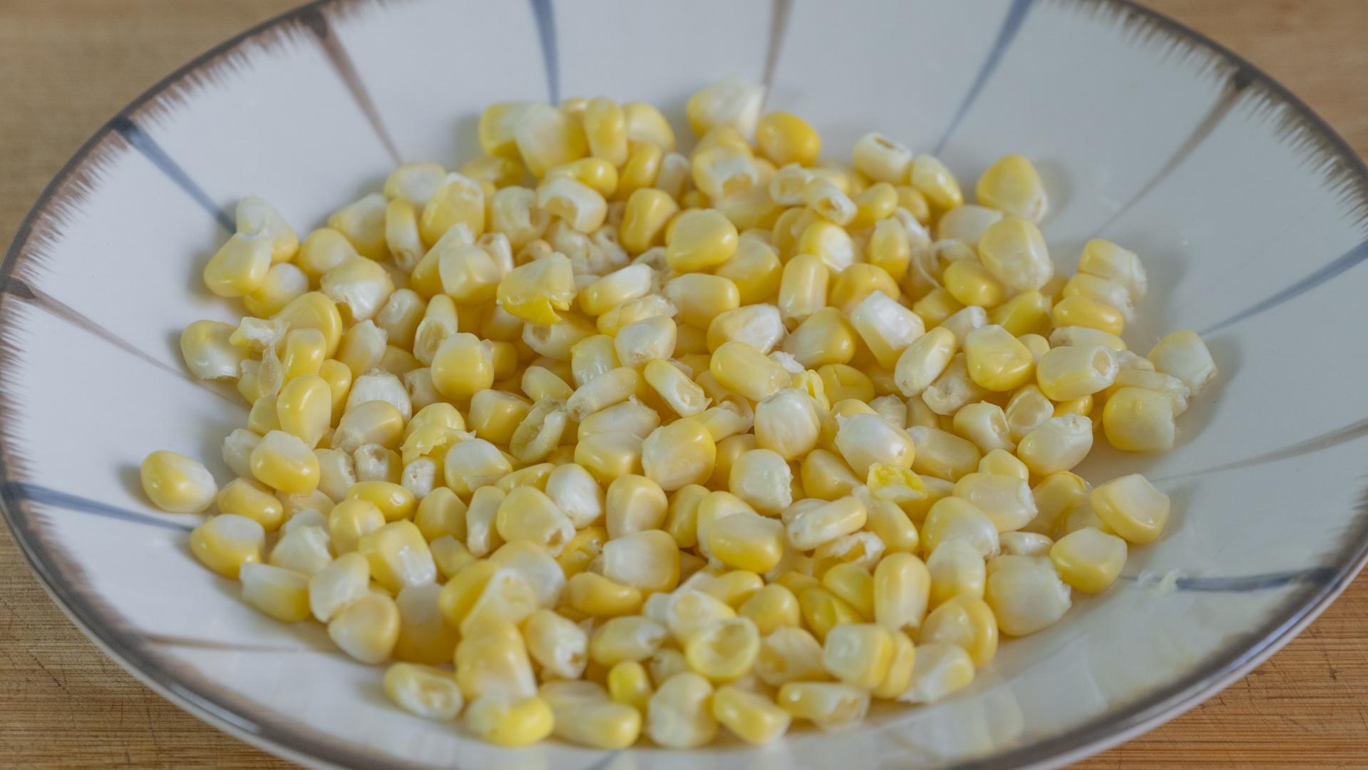 4、玉米1個,掰掉葉子後把玉米粒也剝下來,然後先放一旁。