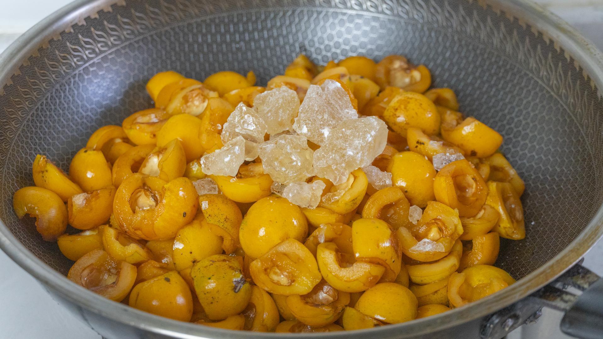 3、枇杷全部倒進鍋裏,然後再加150克冰糖。