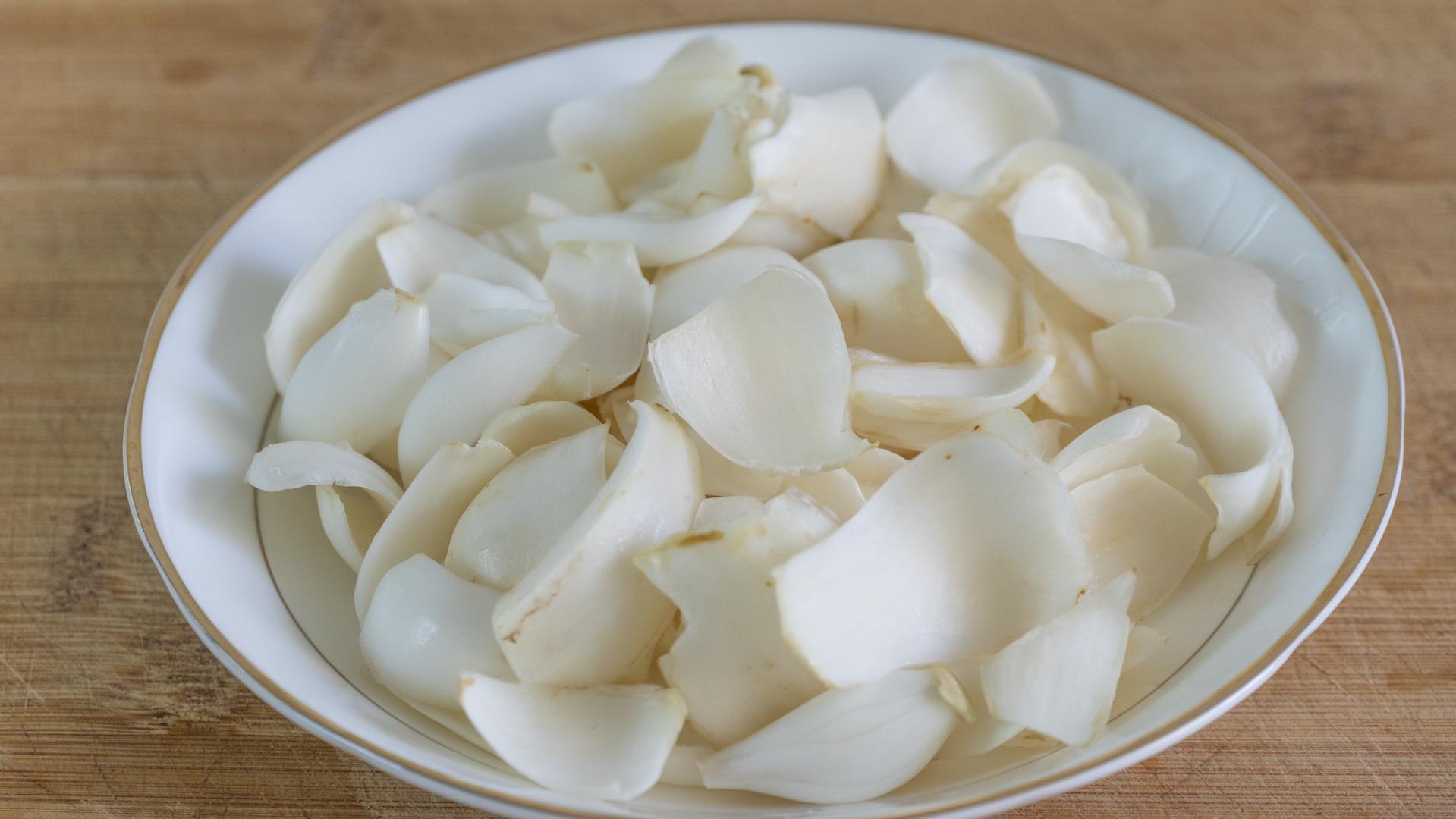 3、新鮮百合清洗乾淨,然後加水泡着,可以去一下澀味。