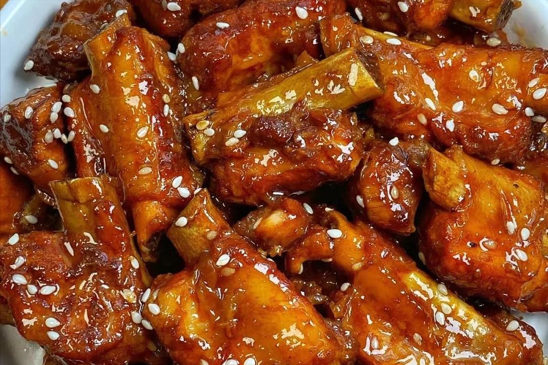 5、翻炒5分鐘加入清水,大火煮開,蓋上蓋子轉中小火燉40分鐘,再開蓋轉大火收汁,撒上白芝麻即可。