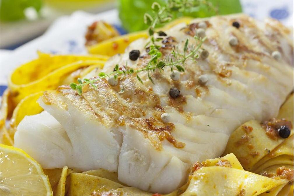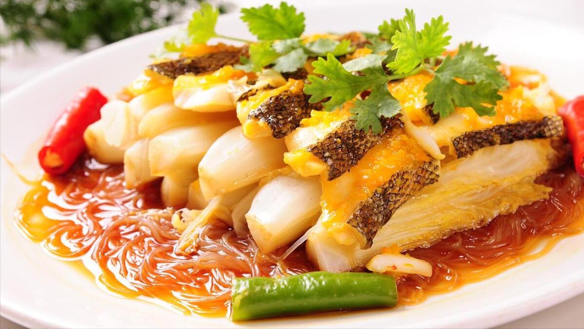 2、盤子底部鋪上蔥段、薑片,放入鱈魚,表面再來點薑絲,然後大火蒸8分鐘出鍋;