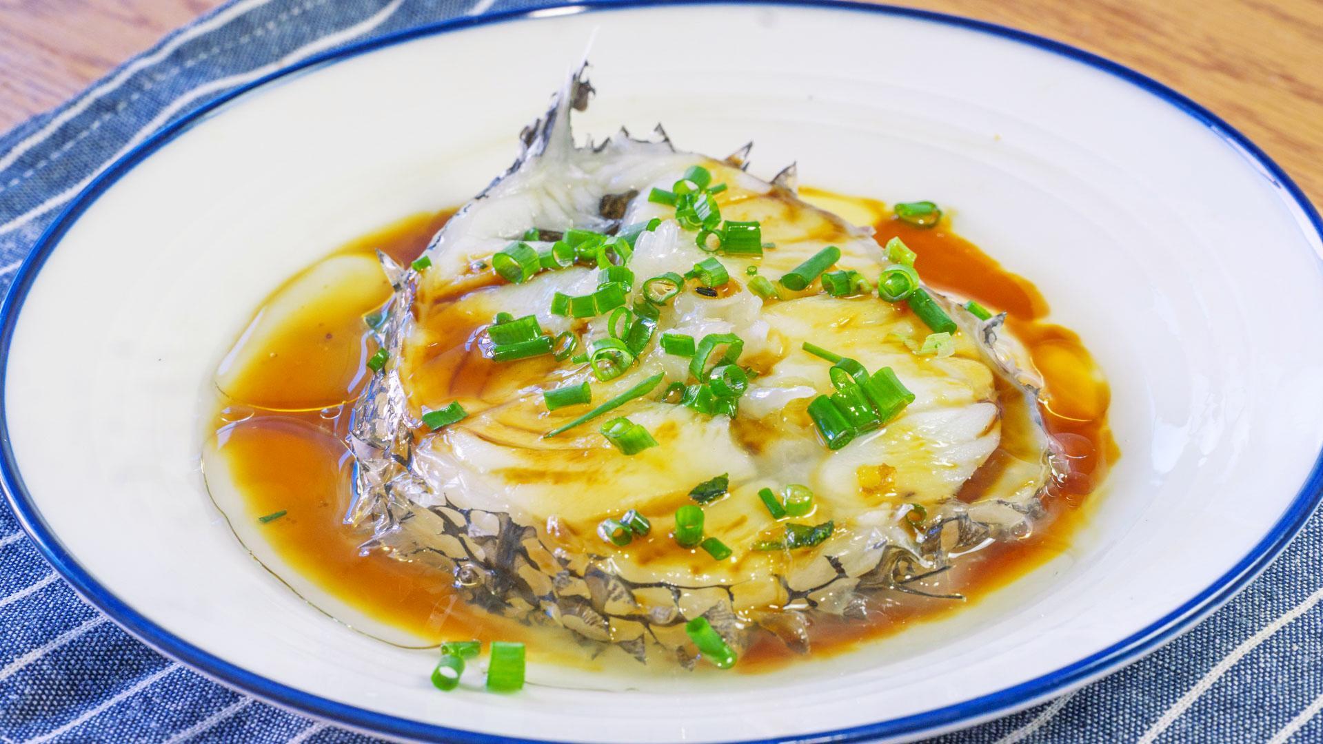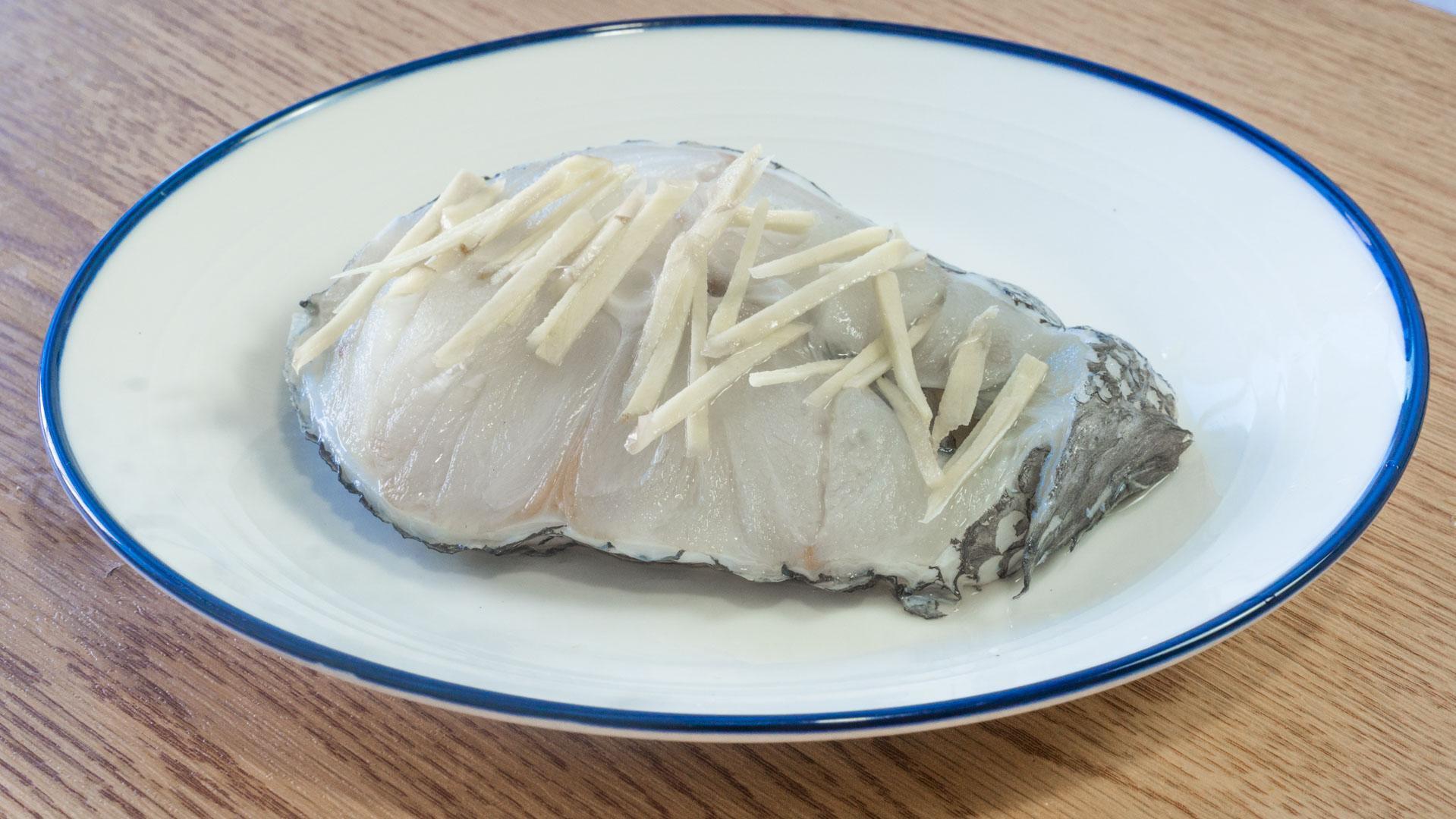 鱈魚表面上的薑絲我們用筷子夾走,然後淋上2勺蒸魚豉油,再來點小蔥花,澆上一勺熱油,清蒸鱈魚就好了;肉質鮮嫩爽滑,特別適合小孩子喫。