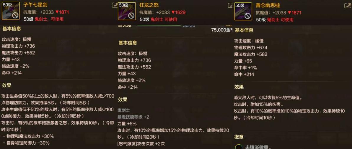 這3把武器可以任選其一,差距極其小,其中“子午七星劍”理論上限最高,但也是最不穩定的;