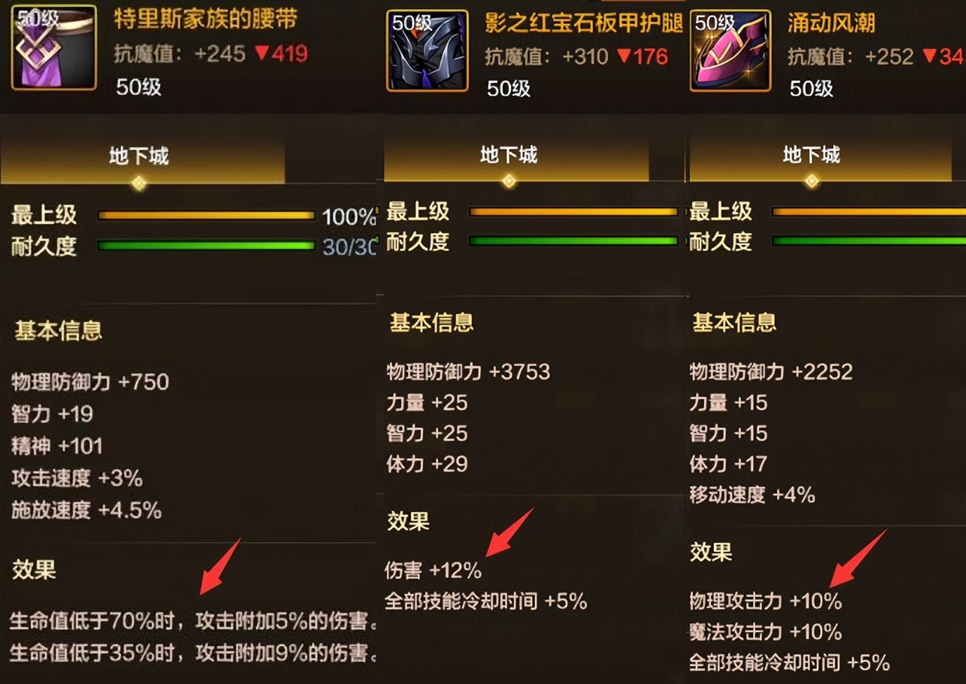 “特里斯腰帶”,這件腰帶很特殊,它需要壓低血量才能喫到增傷詞條,因此只適合紅眼哥;