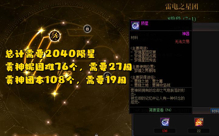 “霧神團本”每把產出108個隕星,大概需要通關19次才能畢業。