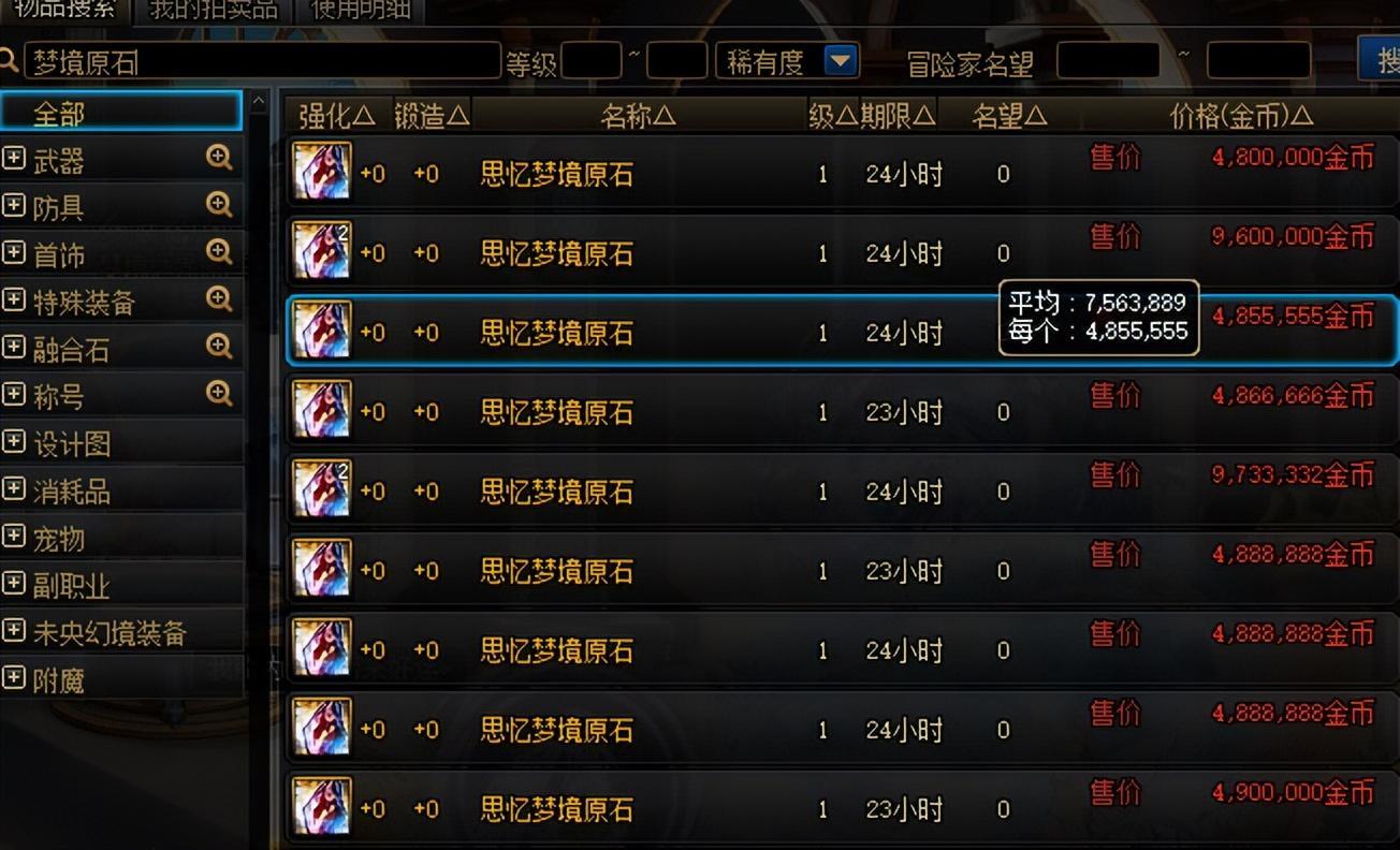 “夢境原石”畢業週期相差31周,但這個週期可以通過拍賣行縮短,而且以後的夢境原石多半會越來越便宜!