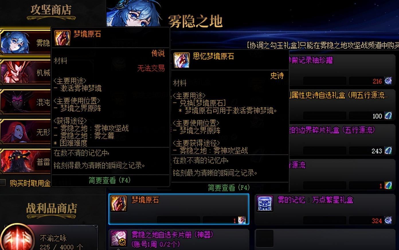 但是,這裏還有一個細節值得一提,除了通關可獲得“夢境原石”外,拍賣行中也可以購買“夢境原石”。