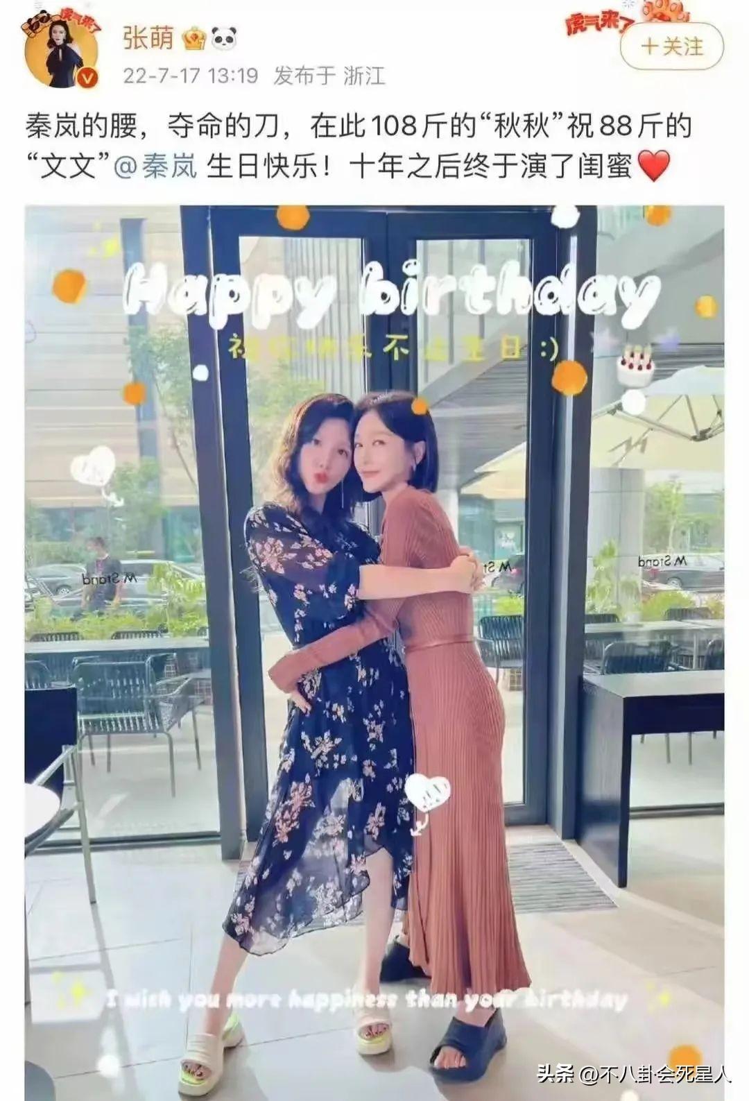 比如張萌,她曾發文爲秦嵐慶生,並大讚對方腰細,兩人擁抱貼貼,上演了一波閨蜜情。但是這次秦嵐過生日,張萌並沒有發文表態。