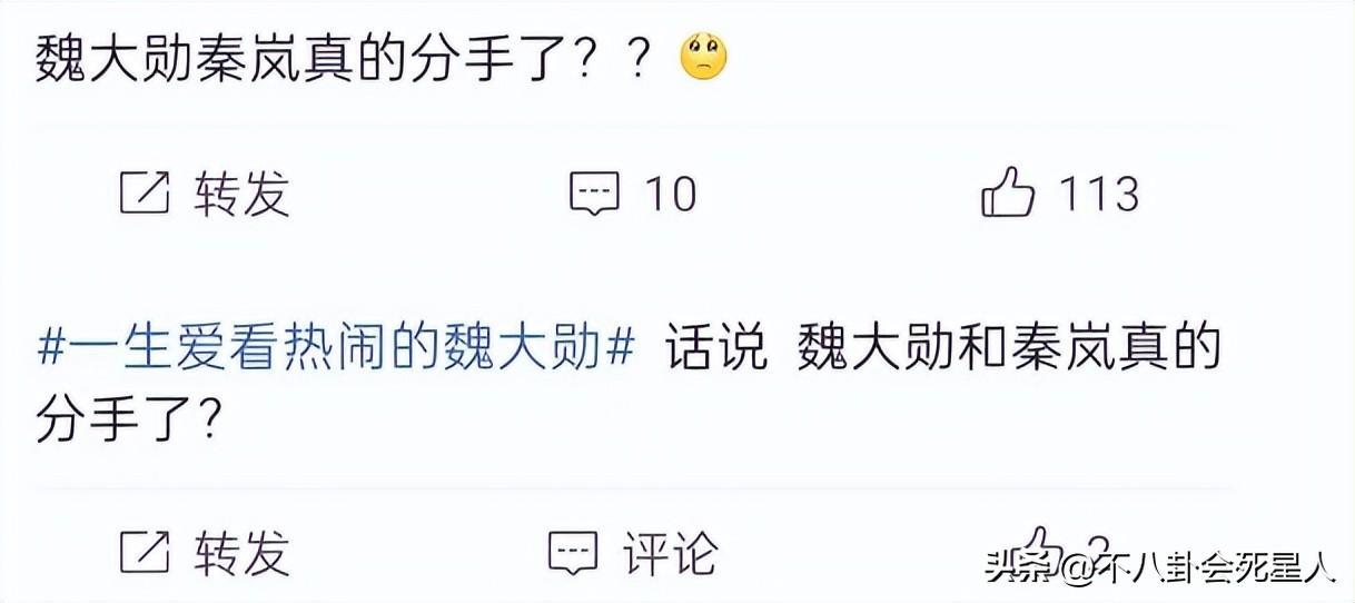後面兩人又被傳分手,魏大勳就沒回應了,秦嵐這邊也不表態,兩人已經有半年沒有公開互動,分手傳聞真假難辨。
