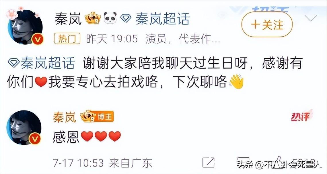 於正雖然不是明星,但他也算半個公衆人物,知名度不亞於很多二三線明星,他也曾發文爲秦嵐慶生,但是這次卻沒提了。