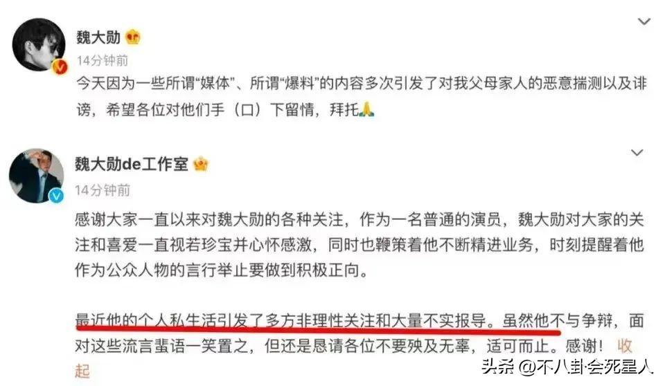 不過,那時魏大勳及其工作室發文,表示網上那些所謂的爆料,都是不實內容。