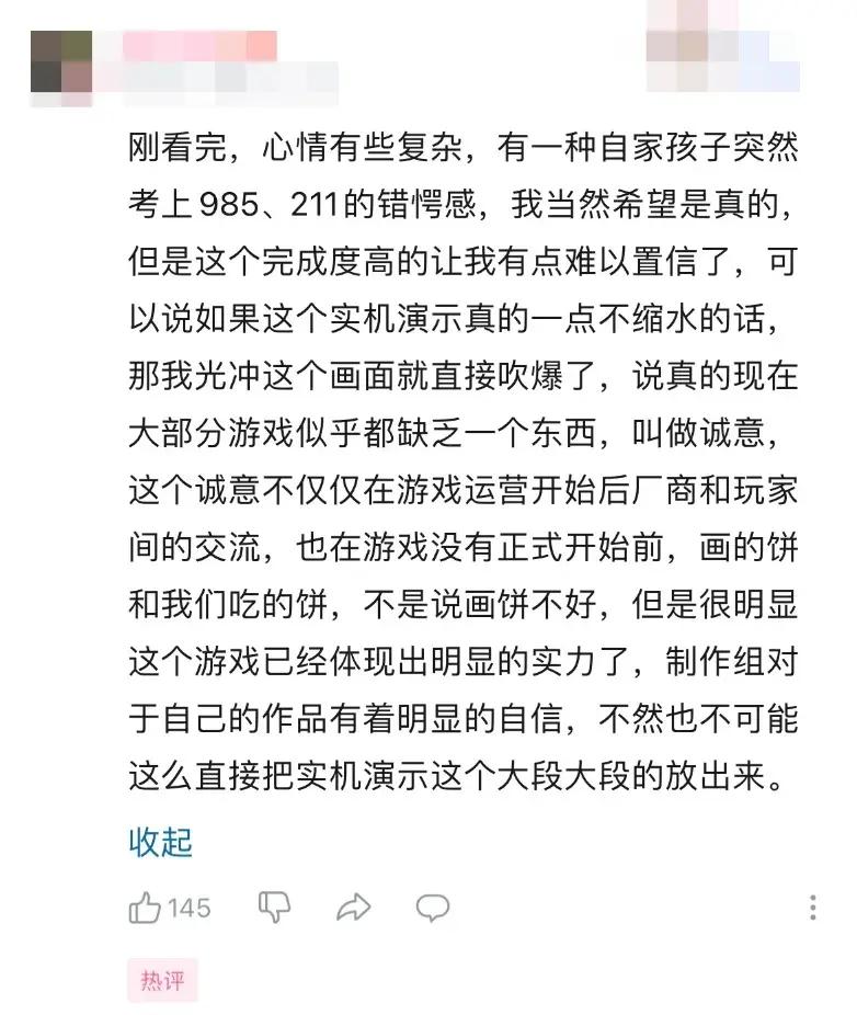 顯然,這裏大家說的“錯愕感”更多是在描述一種超出預期的感受,實際上這種感受不僅來自首曝直接端出的13分鐘實機演示,還來自這段視頻方方面面展現出的“硬實力”。