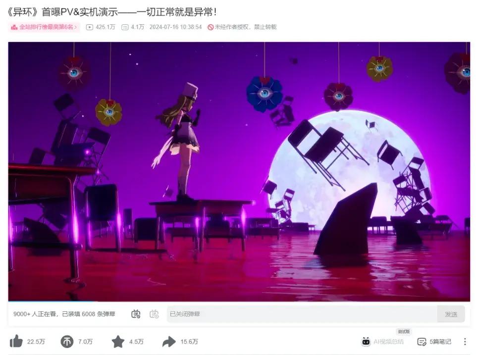 雖說這起事故打亂了《異環》的宣發計劃,但天天這款遊戲還是成爲了玩家的討論焦點。截止到目前,官方視頻的播放量已經超過了400萬,並且同時在線觀看人數一直維持在萬人以上,如果沒有被搶跑,這個數據顯然只會更高。