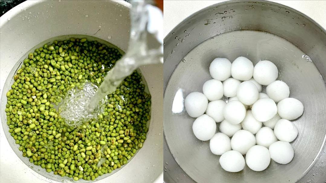 1、綠豆100克加清水洗乾淨,然後泡一夜,可以放冰箱,避免豆子發芽,最近的溫度實在太高了。