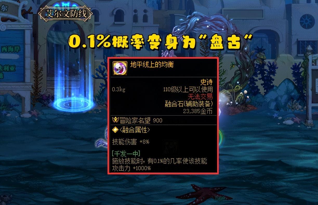 “地平線上的均衡”,釋放技能時,有0.1%概率讓該技能增加1000%攻擊力!