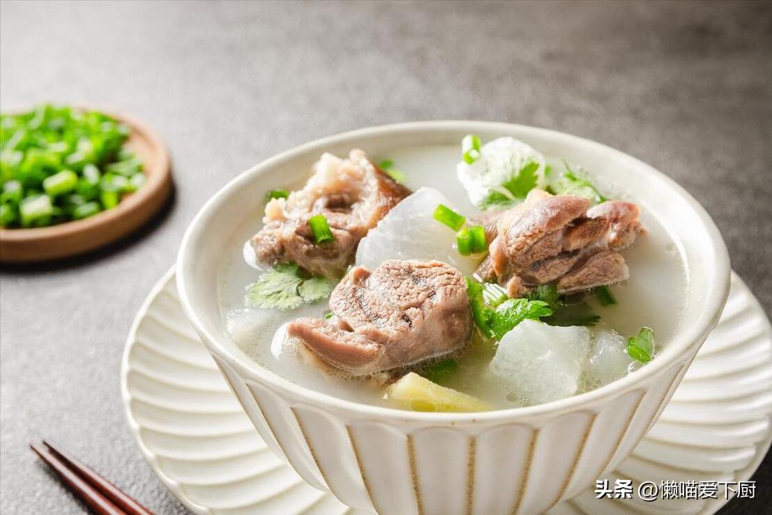 ④放配菜:這個時候可以放入白蘿蔔或冬瓜等配菜,蓋上鍋蓋繼續燉30分鐘,出鍋前加些食鹽、胡椒粉調味,再撒點蔥花即可。