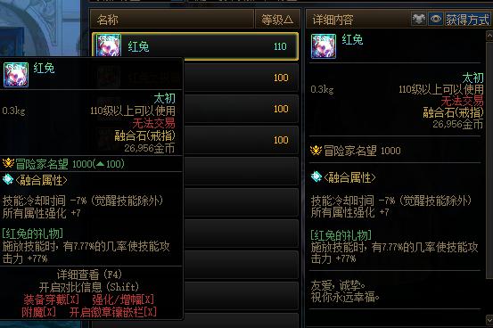 「2」紅兔:技能冷卻-7%,所有屬強+7,釋放技能時有7.77%概率增加該技能77%攻擊力!