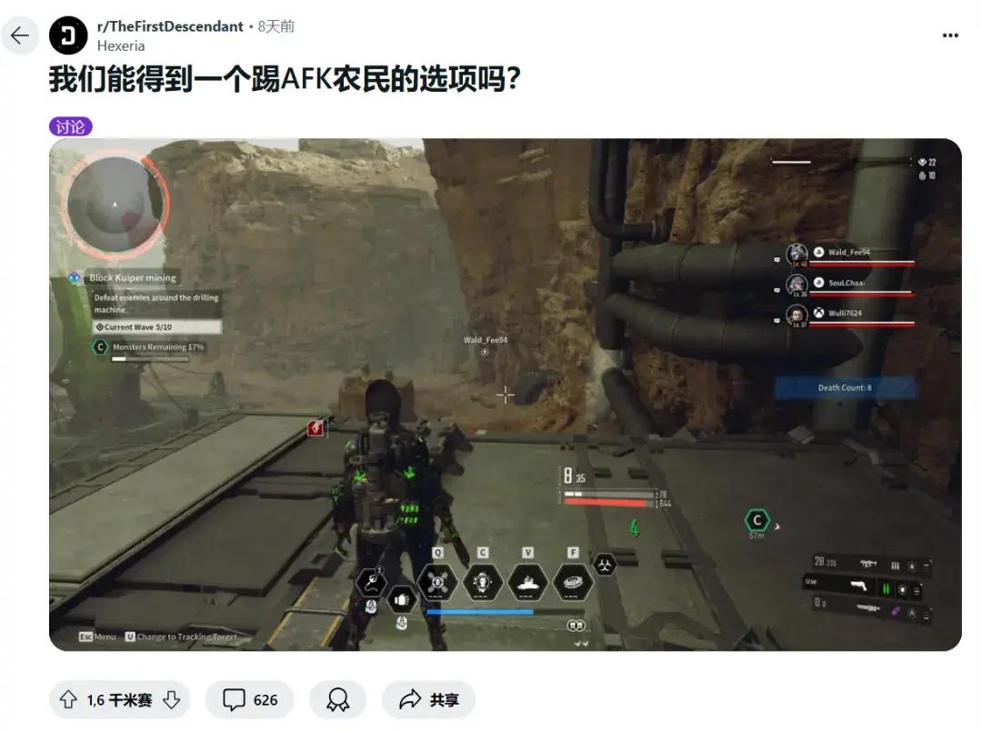 但這樣所謂的“非暴力不合作”也並不是每個玩家都認同,比如在Reddit的《第一後裔》板塊,相關討論中對掛機行爲表達抱怨和反對仍舊佔了多數,要求增添踢出掛機者功能的帖子獲得了上千贊。