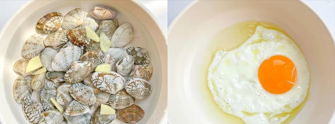 1、花甲清洗乾淨,加一勺鹽和清水泡20分鐘。