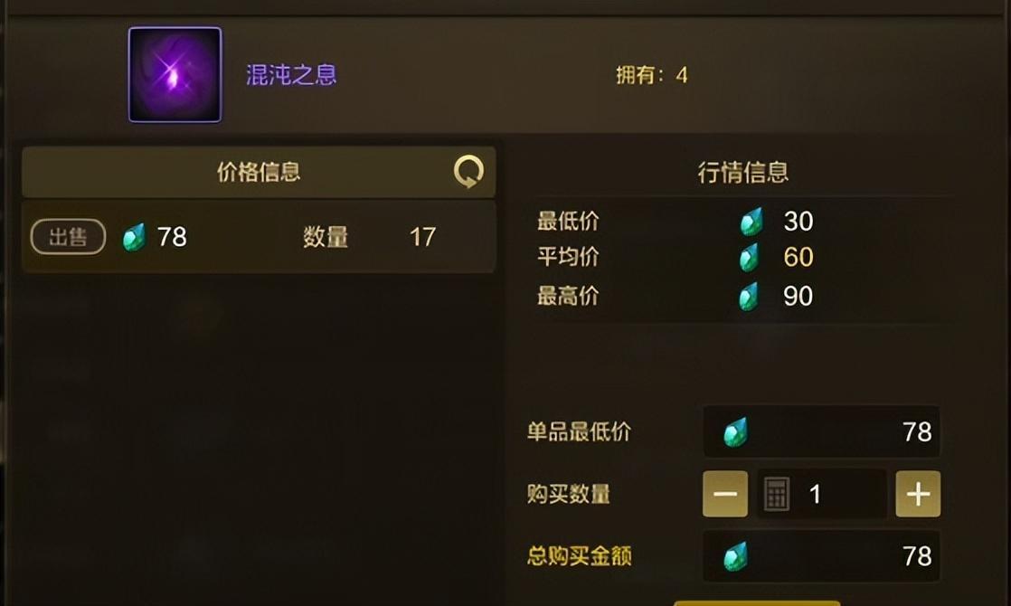 除了直接爆出混沌之息外,分解不要的封印石、精髓等也能得到混沌之息,所以前期價格會較高,中後期也會掉的比較快。