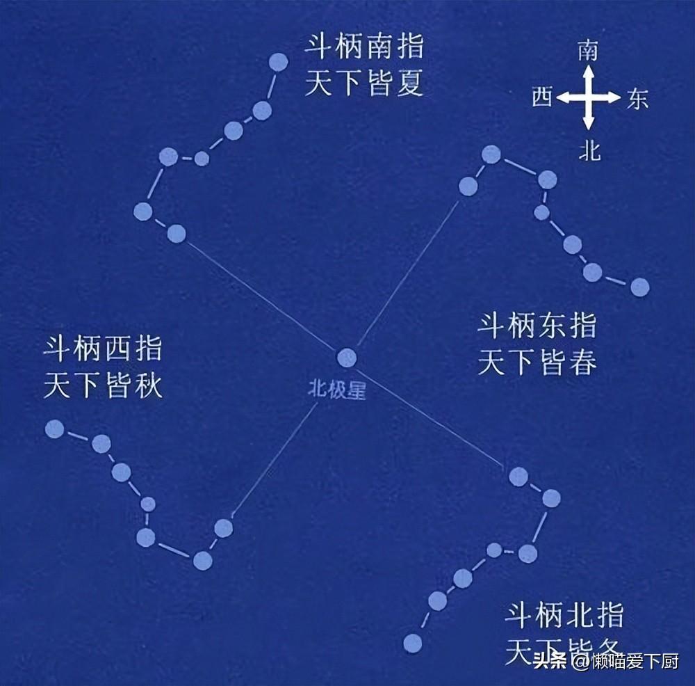 古代曆書中認爲“鬥指西南維爲立秋”,當天空中北斗七星的斗柄指向西南方向、太陽到達到達黃經135°時,就是一年之中立秋交節的時間。
