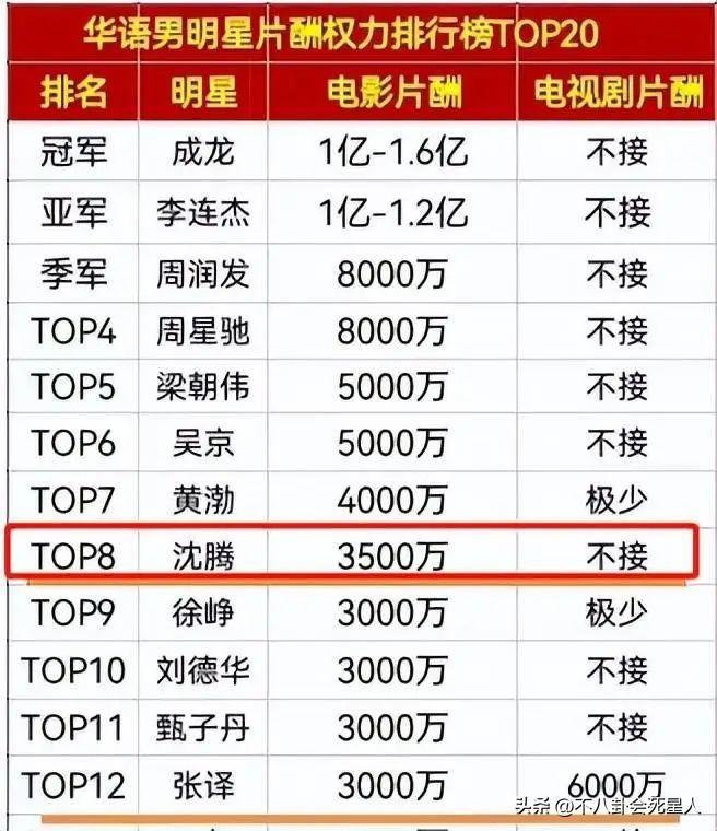 沈騰雖然低調,但是他在電影圈的戰績是圈內數一數二的,總票房已經超過了300億,而他成名之後的片酬也不算低,之前曾被曝電影片酬在3500萬左右。