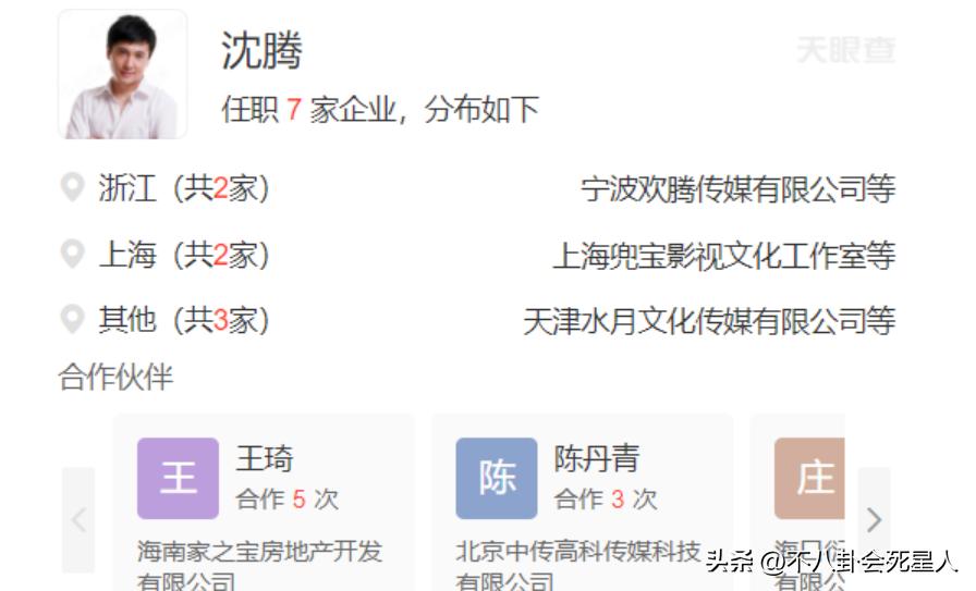 除了當演員,沈騰自己也是“老闆”,早在幾年前,沈騰名下相關聯的公司就有7間,其中6間是法定代表,1間是股東。