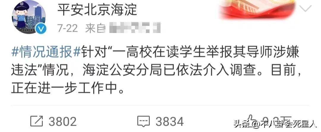 隨後,北京警方發文,表示針對人大導師被舉報的事,海淀公安分局已依法介入調查。