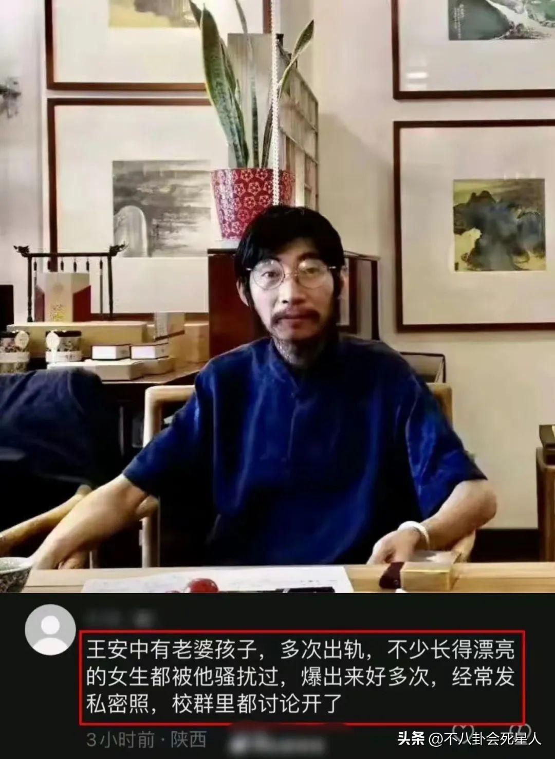 接着,陸續有人爆料王安中,有陝西的網友說他有老婆孩子,多次出軌,名聲在校羣裏都傳開了。