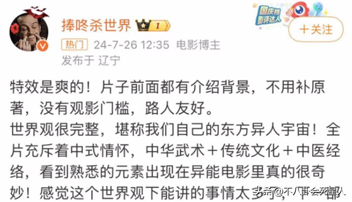 影片中更各種異能的展示,都結合了中醫經絡、陰陽五行、道家思想的設定,咱老中人看了有一種天然的親近感,大概這就是老外看哈利波特騎掃把的感覺,謝謝烏爾善導演,咱們中國觀衆也能揚眉吐氣、絲滑地看國風超能力電影了!